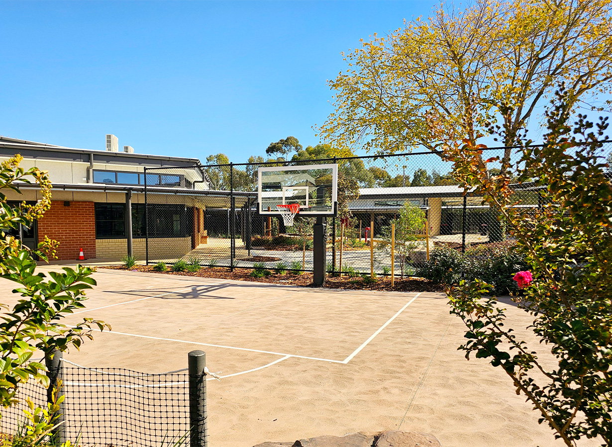 In the middle school playground, more challenging play equipment was introduced—such as a mast activity net and climbing modules—suitable for students with developing strength and motor skills. Hard surface ball play areas, and passive social spaces like the Yarning Circle were incorporated to provide a mix of active and quiet engagement. In addition a selection of tables was installed for social and class use. This area has a lot of unstructured play opportunities too.